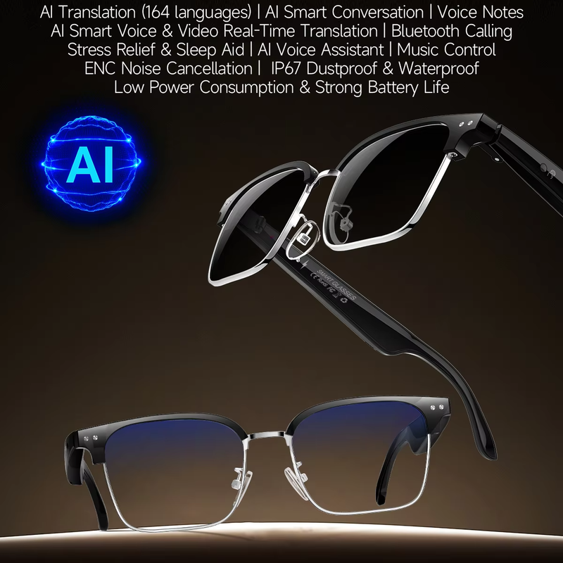แว่นตาอัจฉริยะ W100D AI แปลภาษาได้ ถ่ายภาพไร้สาย เปลี่ยนสีได้ รองรับการโทรผ่านบลูทูธ ไวไฟ สำหรับผู้ชายและผู้หญิง