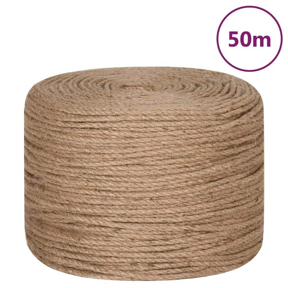 W2B VidaXL High Strength Durable 3-Strand Jute Twisted Rope 164.0' Long and 0.24" Thick for Decorations Coiled Packing