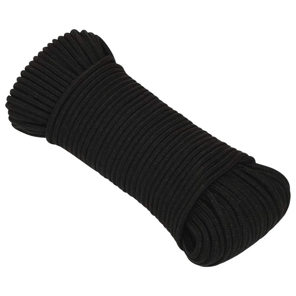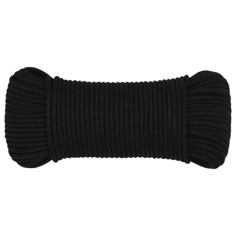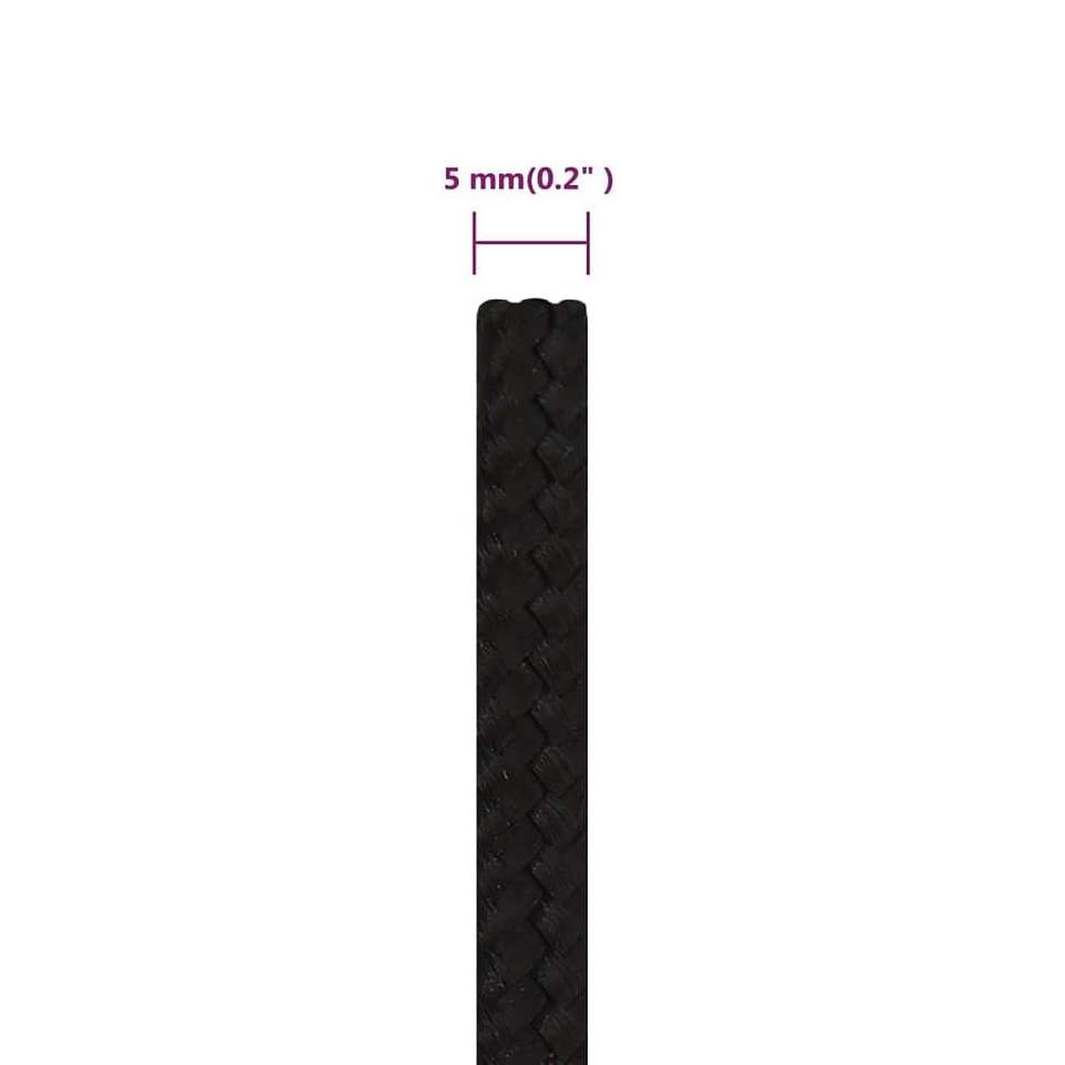 W2B VidaXL Work Rope 0.20" Black 328.1' Double Braid Construction High Strength Polyester Soft Fiber Steel Twisted for Work Use