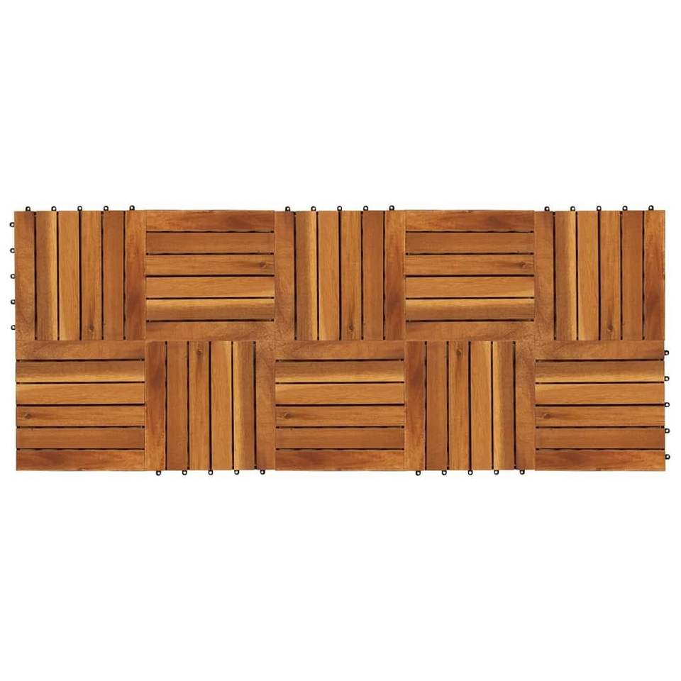 W2B Vidaxl Modern 10pcs Acacia Decking Tiles 11.8"x11.8" Vertical Pattern 12mm Smooth PU Teak Plastic Outdoor Flooring Basement