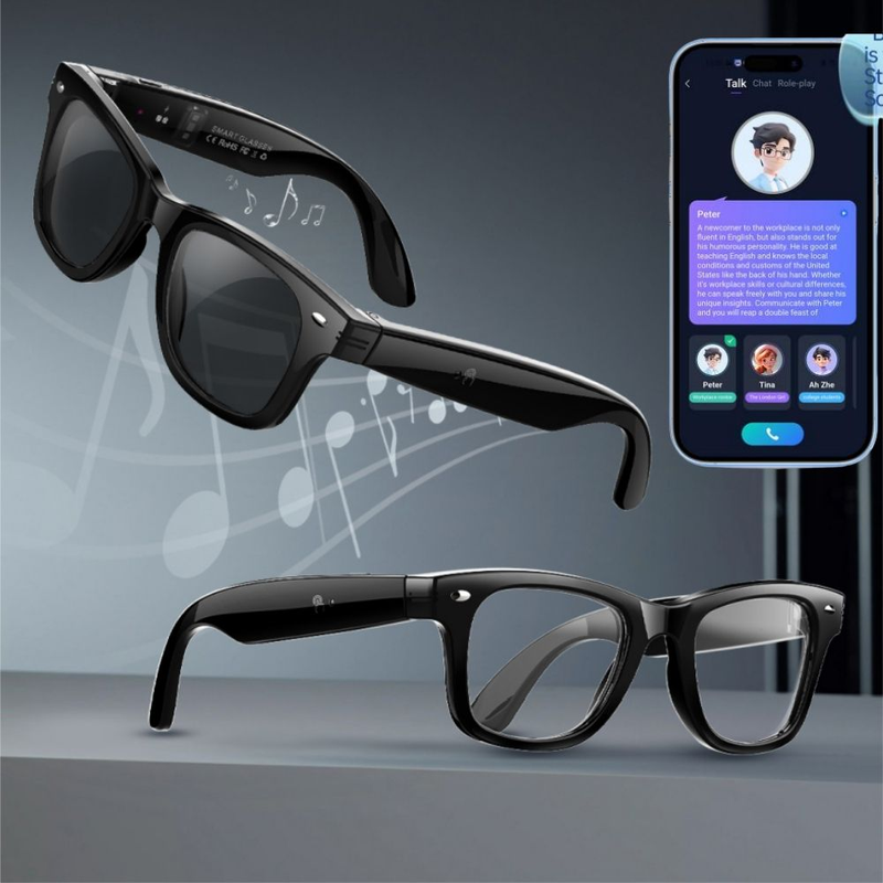 แว่นตาอัจฉริยะ W300 ป้องกันรังสียูวี แปลภาษาด้วย AI ตรวจสอบข้อมูล นับก้าว แว่นกันแดดสำหรับกิจกรรมกลางแจ้ง ชุดหูฟังอัจฉริยะ