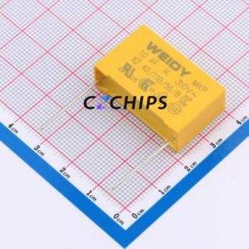 ตัวเก็บประจุนิรภัยแบบ Through hole (THT) รุ่น W42Q3105KS8L00A0W0, ระยะขา P=27 มม. ความจุ 1uF ค่าความคลาดเคลื่อน 10% แรงดัน 310V รุ่น X2