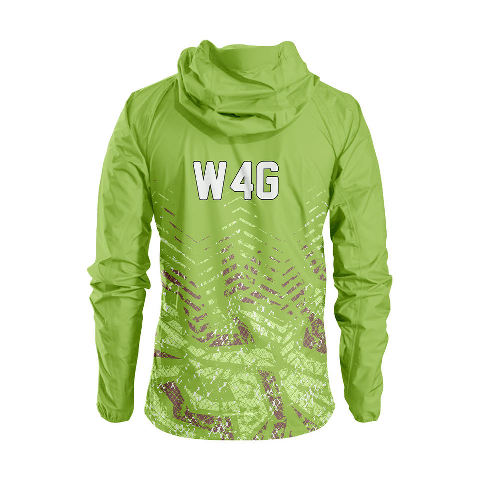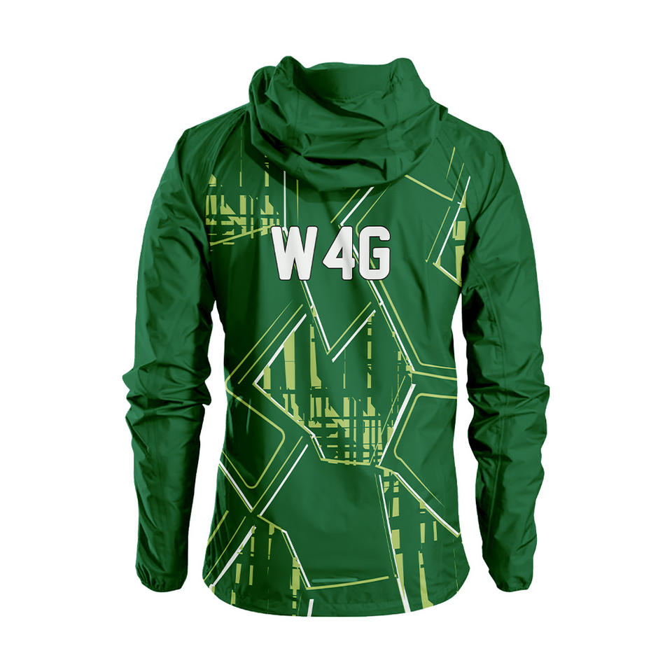 เสื้อแจ็คเก็ตกันลมแบบมีฮู้ด W4G ลายพรางสีเขียวแบบกำหนดเอง เป็นมิตรกับสิ่งแวดล้อม แห้งเร็ว กันน้ำ ระบายอากาศได้ดี เคลือบไนลอน ปิดด้วยซิป