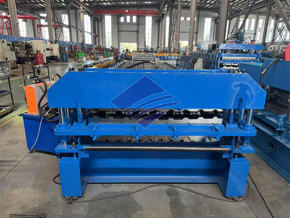 เครื่องขึ้นรูปแผ่นหลังคาทรงสี่เหลี่ยมคางหมู WADJAY เครื่องขึ้นรูปกระเบื้องโลหะแบบม้วน Tr4 Tr5 เครื่องทำแผ่นหลังคา Ibr