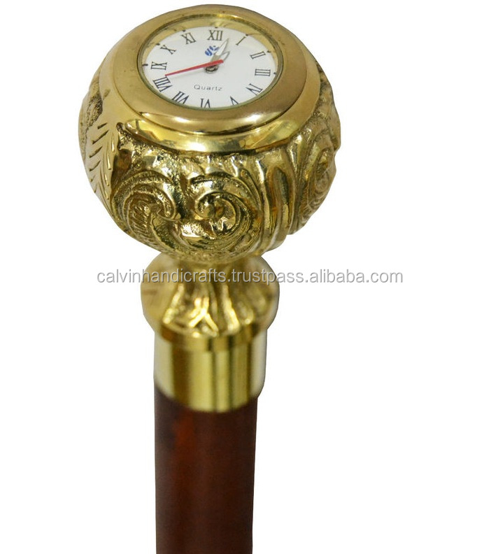ไม้เท้าเดินทะเลทำจากทองเหลืองแข็งไม้เท้าพร้อมนาฬิกาที่เป็นเอกลักษณ์ของขวัญ