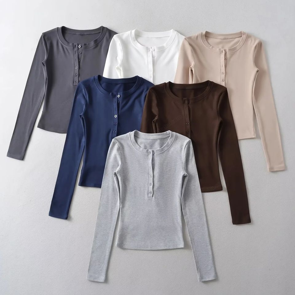 WANBAO TS-1412 Women's Casual V-Neck Knitted T-Shirt 100% Cotton Anti-shrink Regular Fit Solid Color Short Sleeve Winter