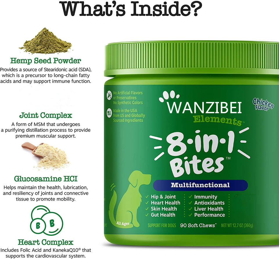 Wanzibei โอเมก้า3 2021สุขภาพผิวกัด8-in-1สำหรับสุนัข + 8 in-1สำหรับสุนัข