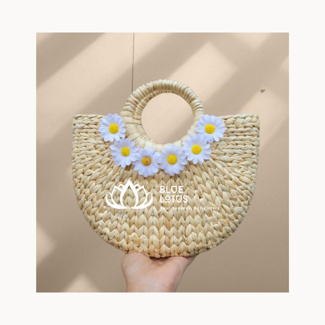 กระเป๋าโท้ทปอกระเจากระเป๋าผักตบชวากระเป๋าผู้หญิงสินค้าแฟชั่นใหม่ทำในเวียดนามสินค้าราคาดีที่สุดจากไร่ดอกบัวสีน้ำเงิน