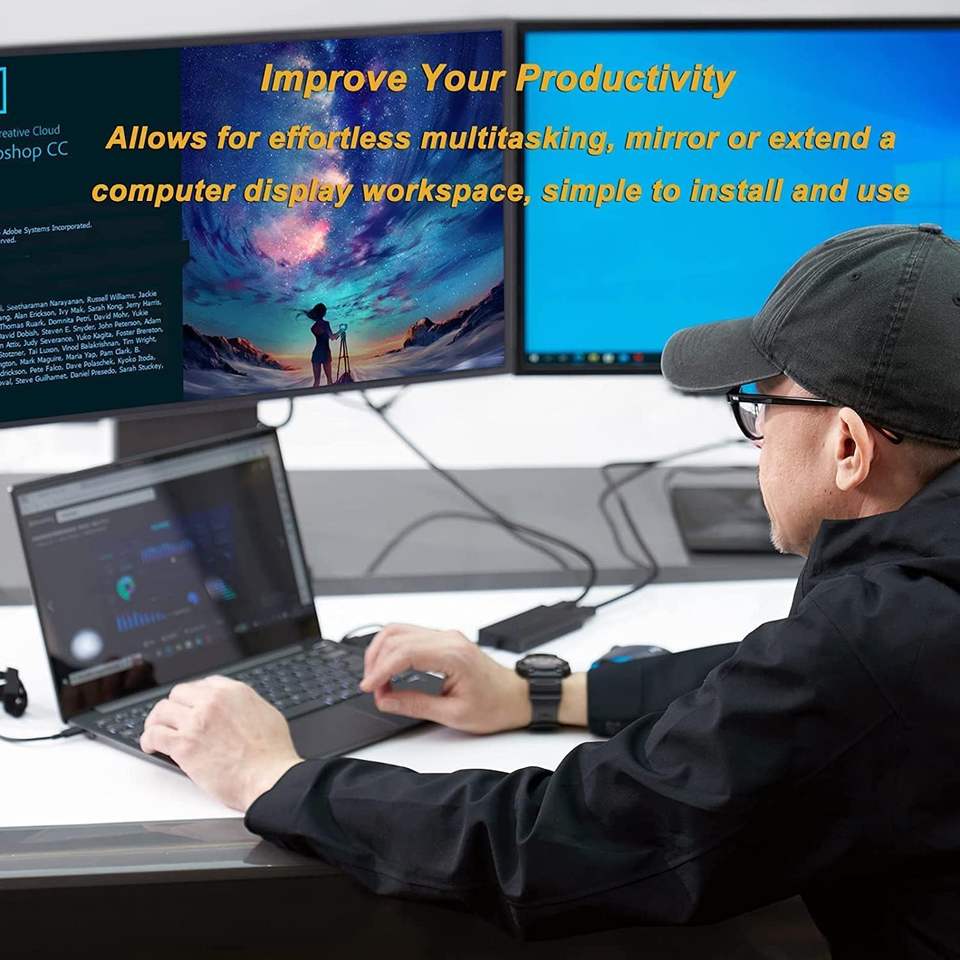 อะแดปเตอร์กราฟิกมินิ WAVLINK USB เป็น HDMI คู่ สำหรับวิดีโอ