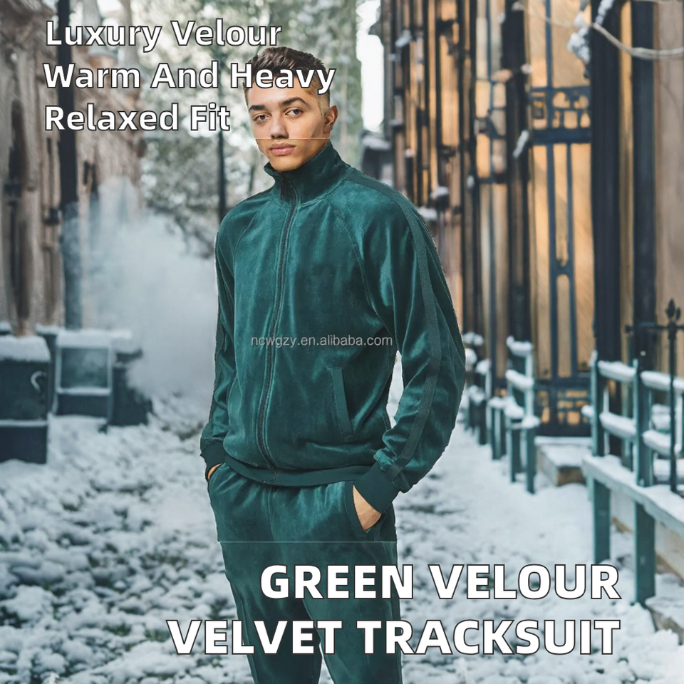 ชุดวอร์มกำมะหยี่สีเขียว WB093TS แบบกำหนดเอง 300gsm ผ้ากำมะหยี่เนื้อนุ่ม ชุดกีฬา ผ้าห่มเทคฟลีซสุดหรู สำหรับฤดูหนาว สไตล์ลำลอง สีพื้น สำหรับผู้ชาย