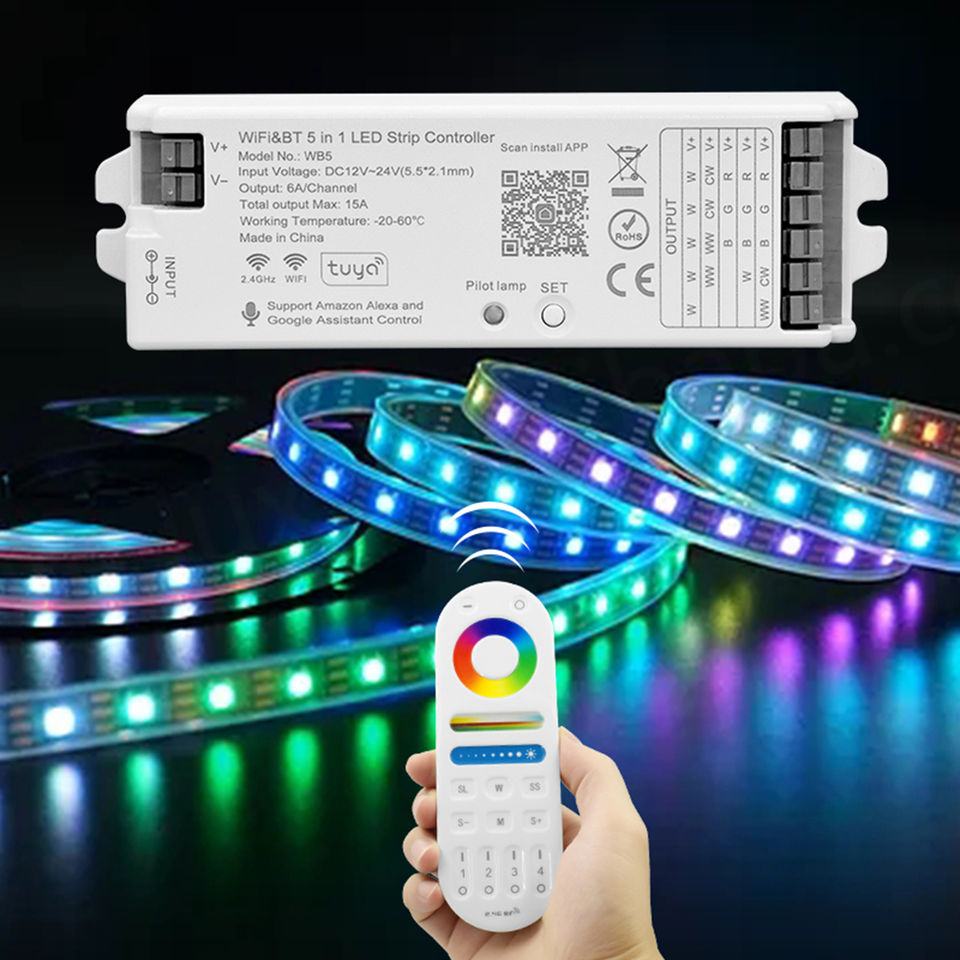 WB5ตัวควบคุมไฟ LED 5 in 1 RF 2.4G Tuya WiFi Alexa Voice ความช่วยเหลือของ Google ที่เข้ากันได้กับการลดแสงแถบ RGB RGBW rgbct นำแสง