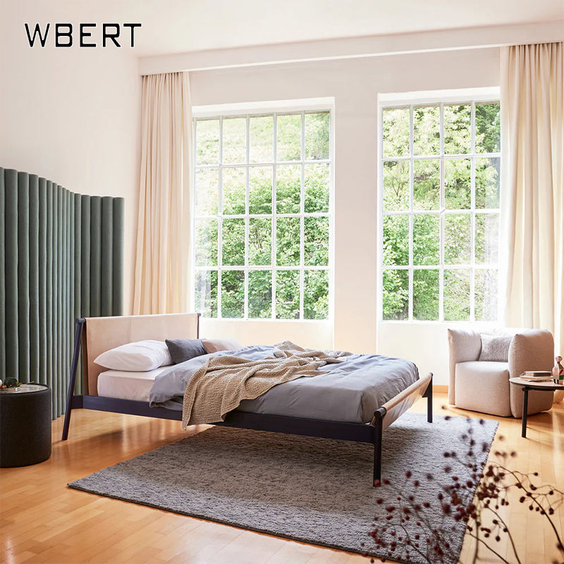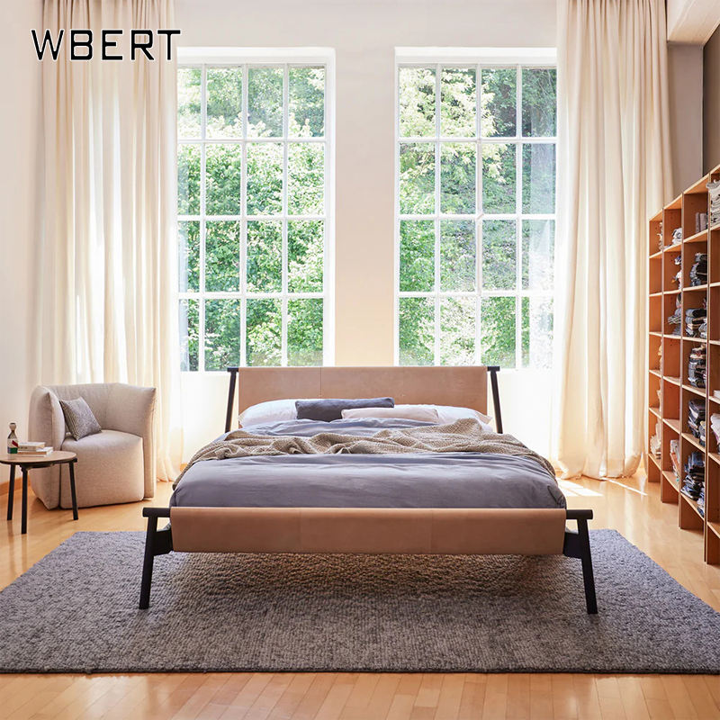 Wbert เตียงคู่หนังอานสีส้มสไตล์อิตาเลียนมินิมอลลิสต์ขนาด1.8เมตรห้องนอนหลักบางเฉียบลายศิลปะหนังลอย1.5เมตร