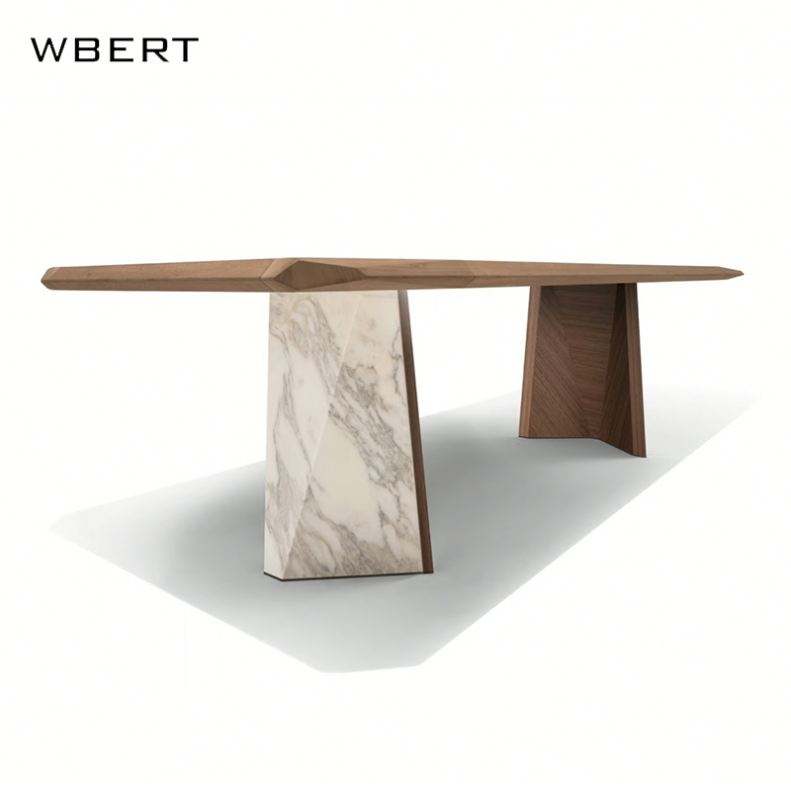 Wbert ไม้เนื้อแข็งอิตาลีแบบมินิมอลลิสต์เนื้อธรรมชาติหรูหราเบาเฟอร์นิเจอร์บ้านโต๊ะรับประทานอาหารหินอ่อน