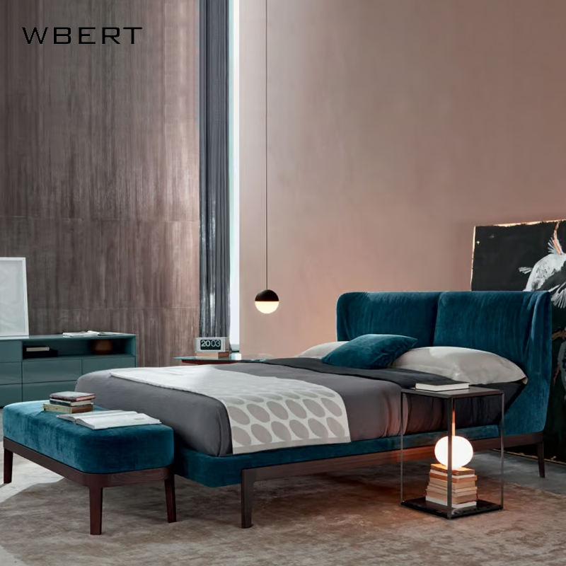Wbert เตียงคู่สไตล์อิตาลีขนาด1.8ม. พร้อมผ้าและโครงไม้แข็งสไตล์นุ่มสำหรับห้องนอนขนาดเล็กวิลล่า & โรงแรมเตียงโซฟา