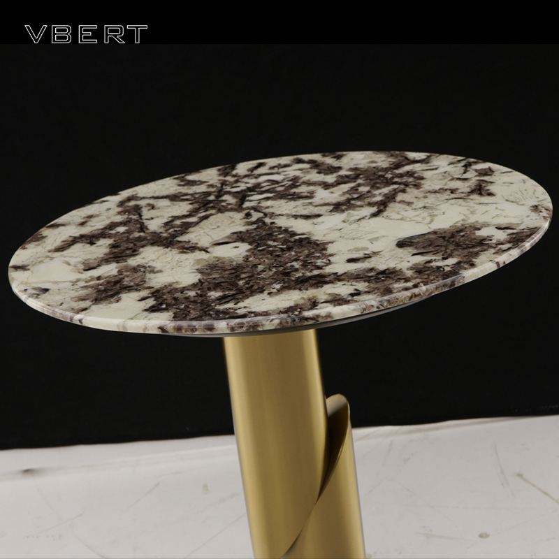 โต๊ะข้างโซฟาหินอ่อนหรูหราสไตล์ WBERT สำหรับห้องนั่งเล่น อพาร์ทเมนต์ขนาดเล็ก ดีไซน์ระดับไฮเอนด์ แนวคิดมินิมอล โต๊ะกาแฟทรงกลม