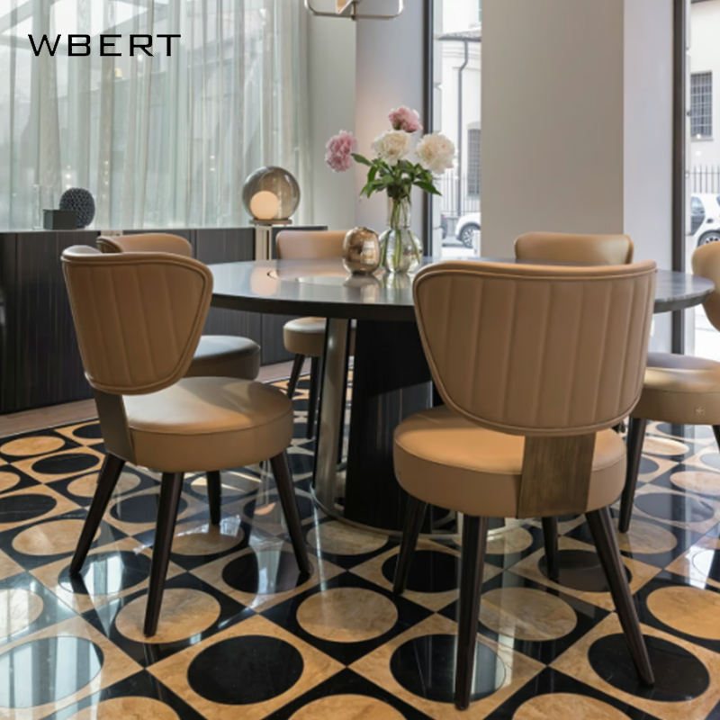 WBERT Modern Nordic Luxury with Simple Leather Backrest Low Leisure Household Stool Solid Wood Dining Chair
