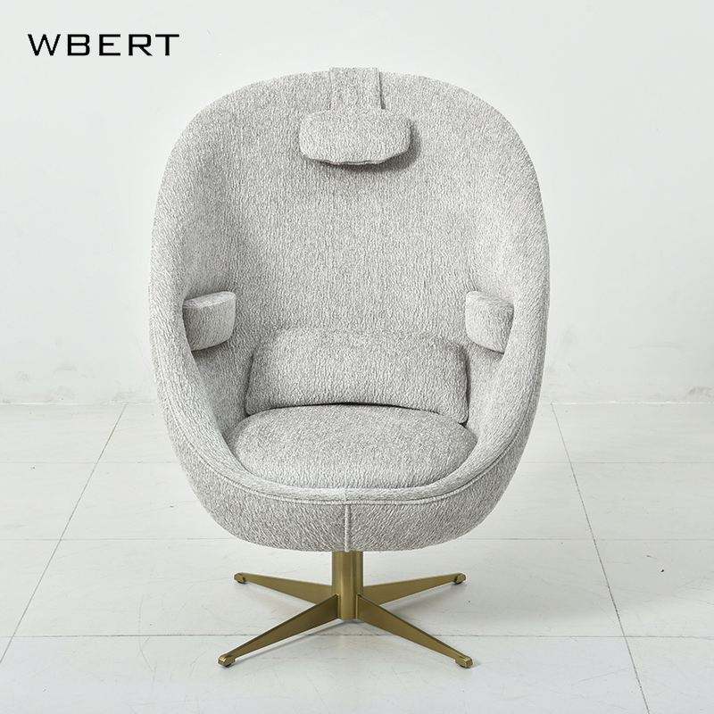 Wbert เก้าอี้เปลือกไข่แบบนอร์ดิก-โซฟาดีไซน์เดี่ยวพร้อมไฟฟีเจอร์หมุนได้หรูหราสำหรับห้องนั่งเล่นรับประทานอาหารหรือระเบียง