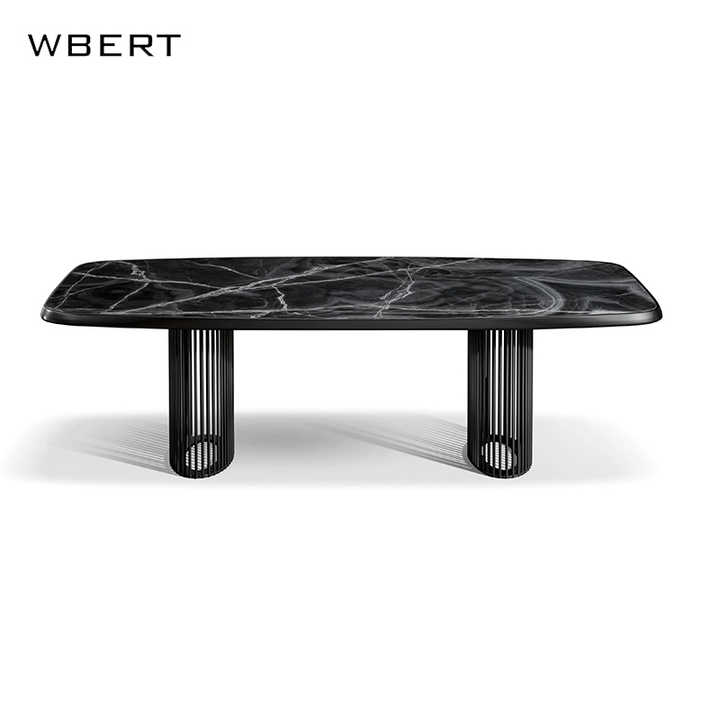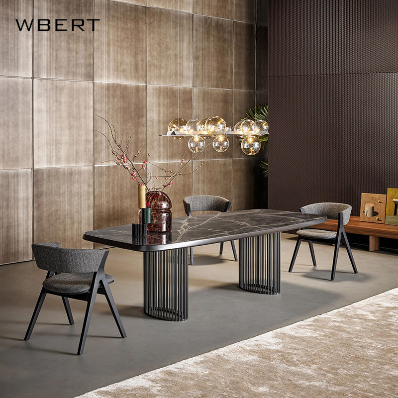 Wbert เซตอาหารฝรั่งเศสแบบย้อนยุคทันสมัยทำจากไม้เนื้อแข็งหรูหรามุมโค้งมนทรงสี่เหลี่ยมผืนผ้าโต๊ะรับประทานอาหารหินอ่อน