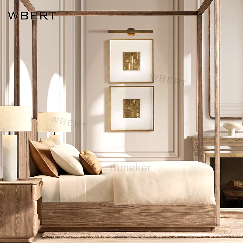 โต๊ะข้างเตียงไม้โอ๊คสไตล์อเมริกันโมเดิร์นสุดหรูจาก WBERT Rh Furniture พร้อมลิ้นชักและช่องเก็บของแบบเปิด-ปิด