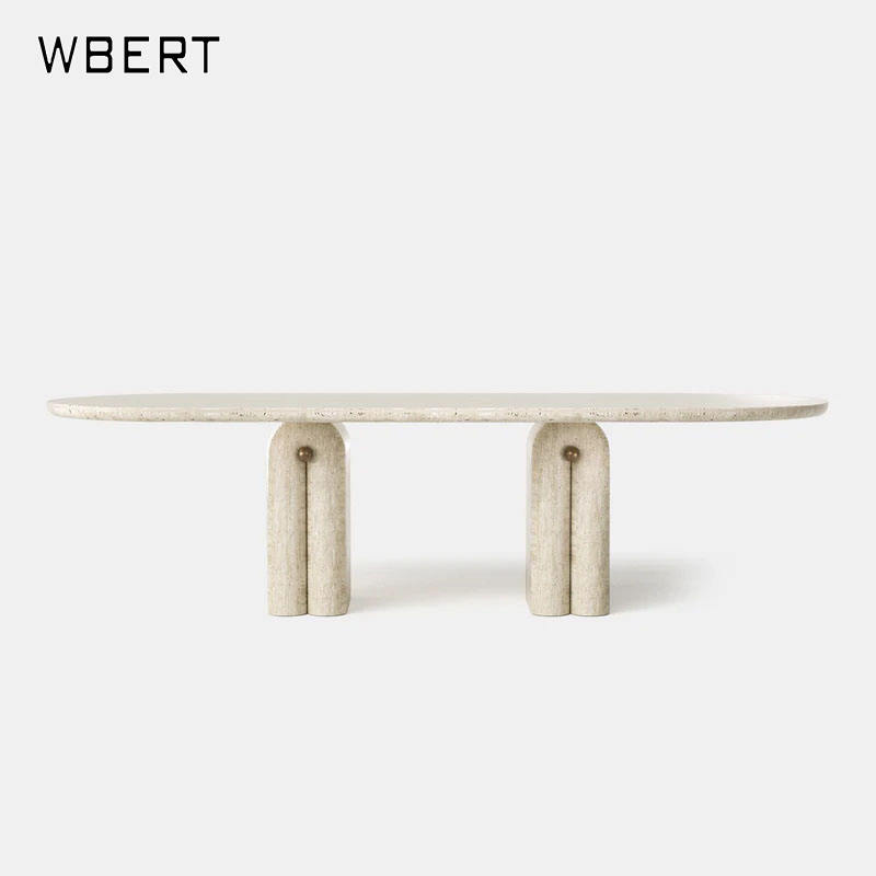 WBERT Vintage Surprise Quiet Wind Natural Cave Stone Table French Light Luxury Minimalist Natural Marble Oval Villa Dining Table