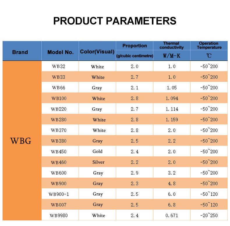 ซิลิโคนระบายความร้อนประสิทธิภาพสูง WBG สำหรับซีพียู พัดลมคอมพิวเตอร์ อุปกรณ์อิเล็กทรอนิกส์ และฮีทซิงค์