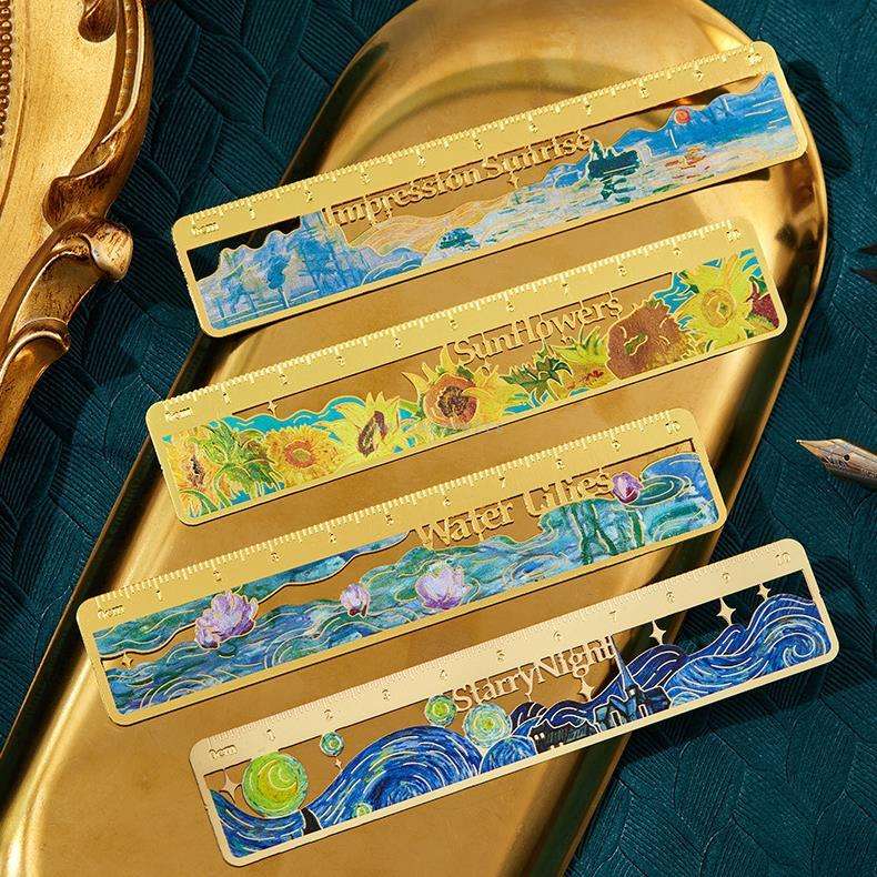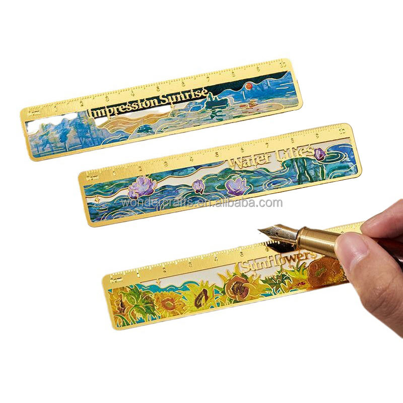 ที่คั่นหนังสือไม้บรรทัดอะลูมิเนียมและทองเหลืองลายภาพวาดสีน้ำมันแบบกำหนดเองสำหรับนักเรียน-ปรับแต่งได้ ใช้ซ้ำได้