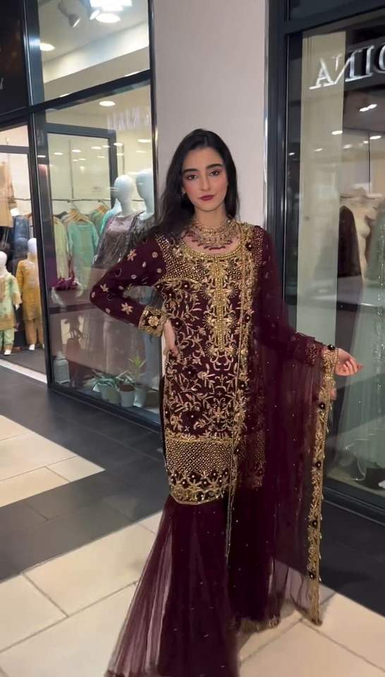 เสื้อสำหรับงานแต่งงานผ้าจอร์เจียปักลายลำดับต้นๆเสื้อ Sharara กับ dupatta สีแดงผลิตในอินเดียสำหรับผู้ใหญ่