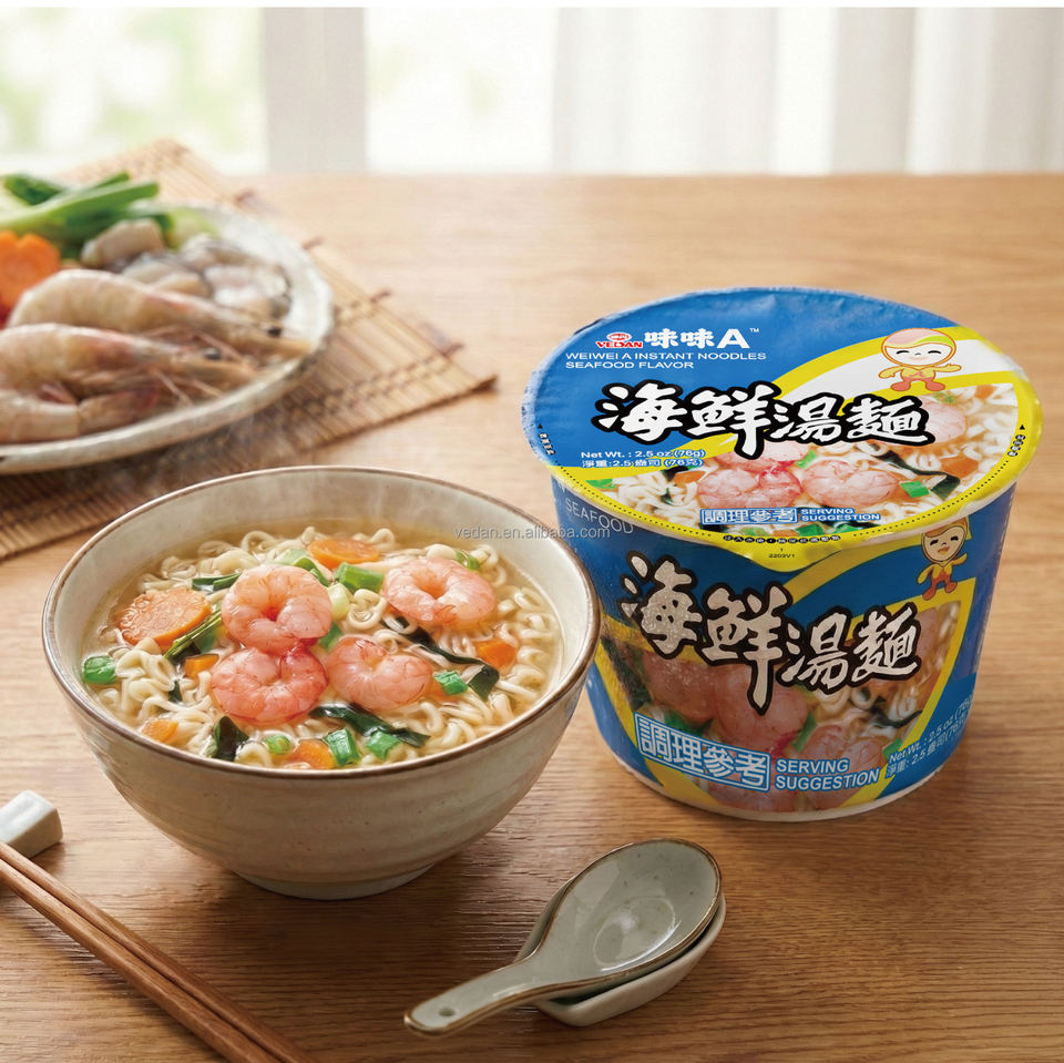 เว่ยเว่ย บะหมี่กึ่งสำเร็จรูปรสอาหารทะเลอบสำเร็จรูป (แบบถ้วย)