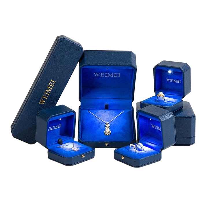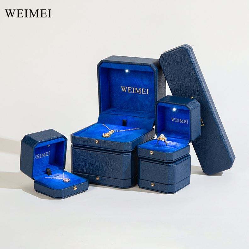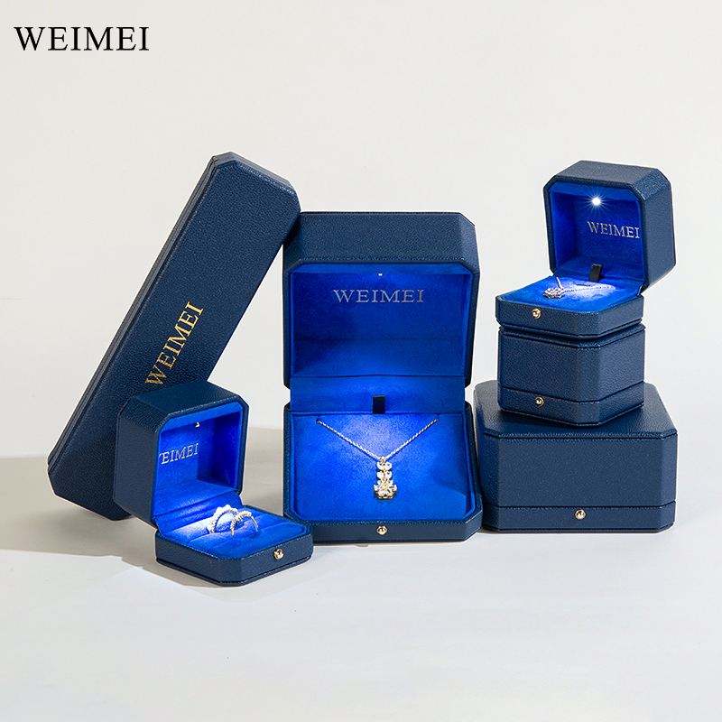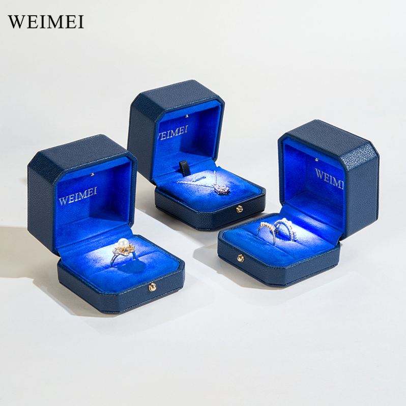 WEIMEI PU Leather Jewelry Box LED Light Earring Ring Storage Customizable