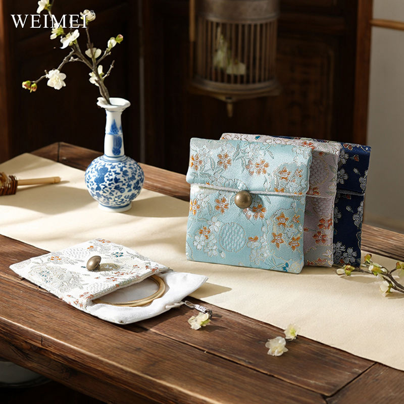 กระเป๋าใส่เครื่องประดับผ้าปักลายวินเทจ WEIMEI สีทองหรือสีเงิน ขายส่งจากโรงงาน สำหรับเก็บสร้อยไข่มุก กำไลข้อมือ กำไล