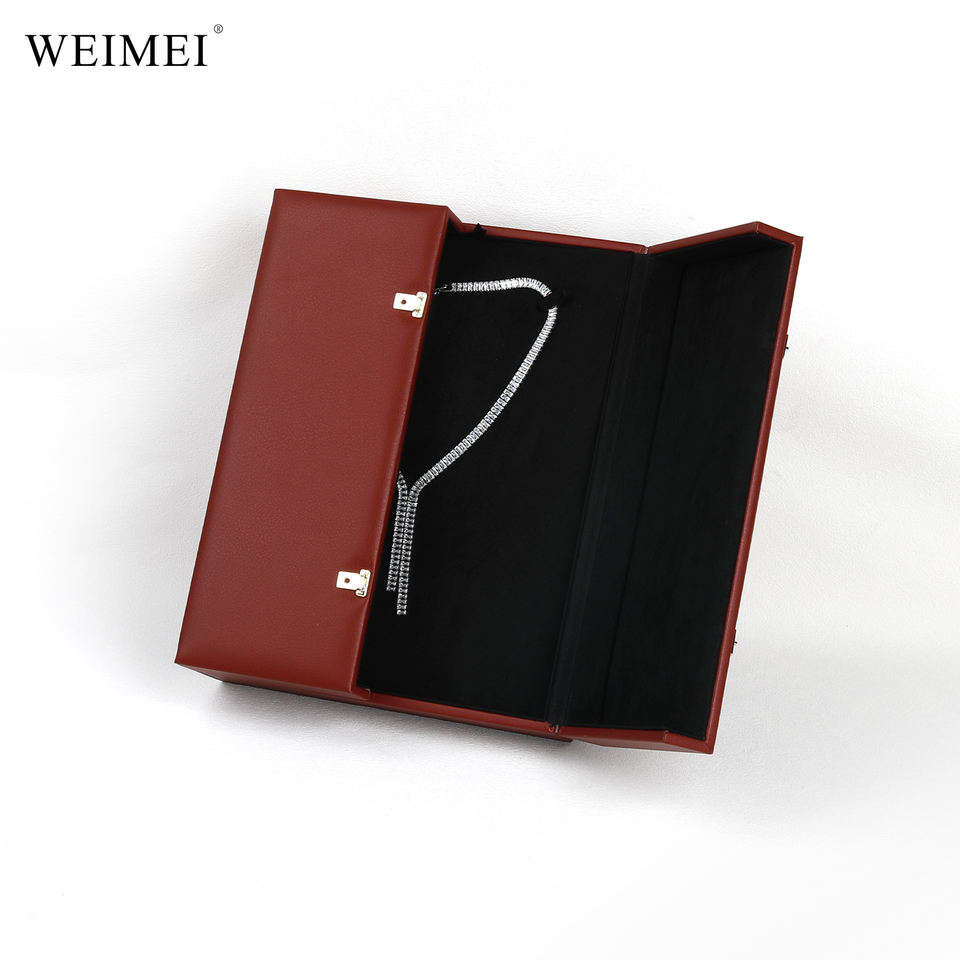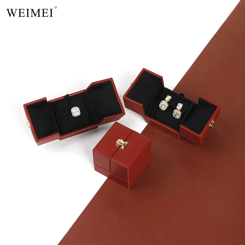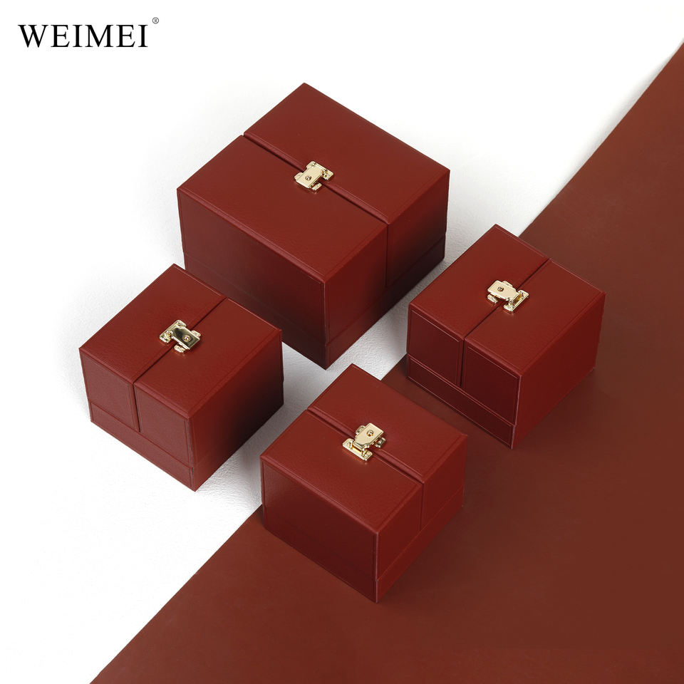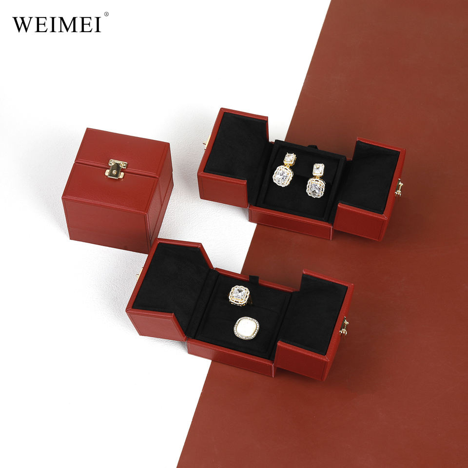 Weimei กล่องใส่เครื่องประดับกำมะหยี่หนังสีแดงสีดำหรูหราแบบออกแบบได้ตามต้องการกล่องเก็บของแบบสองประตูกล่องเครื่องประดับแหวน