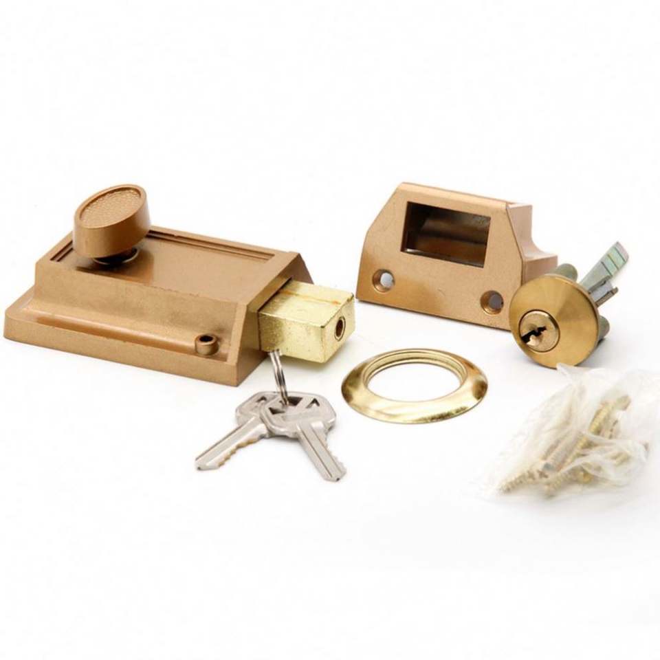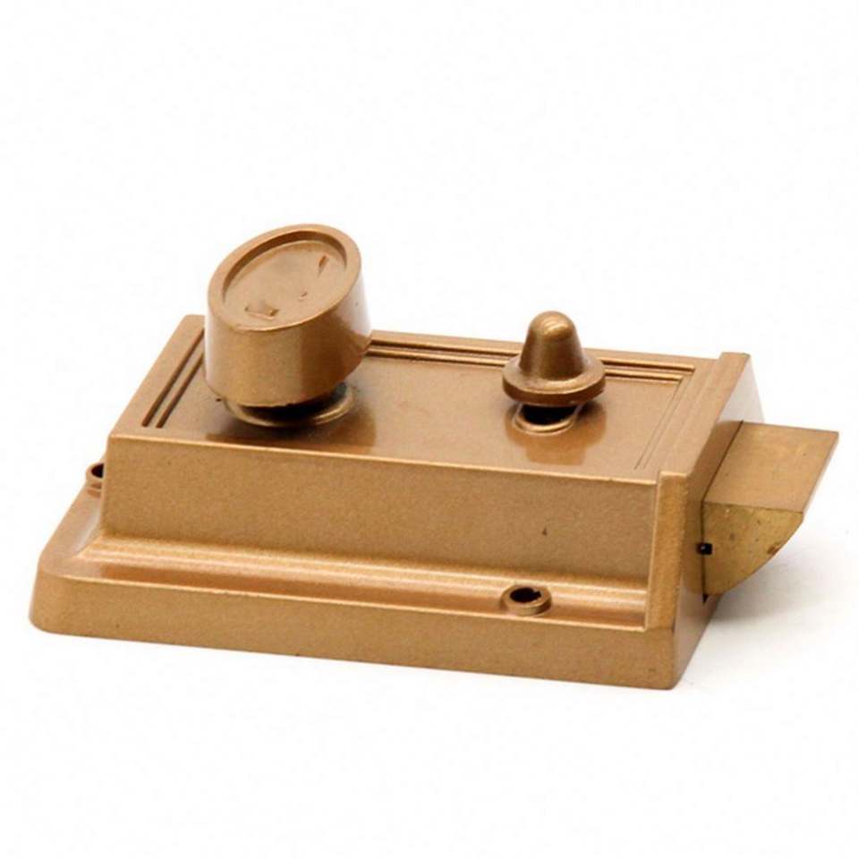 กุญแจล็อคแบบโบราณ WEKIS ไม่มีลูกกุญแจ แบบ Deadbolt Rim Lock วัสดุโลหะผสมนิกเกิลและสังกะสี ระยะห่างระหว่างแกนล็อคและตัวล็อค 60 มม. สำหรับประตูหน้าบ้าน ตกแต่งสีทอง