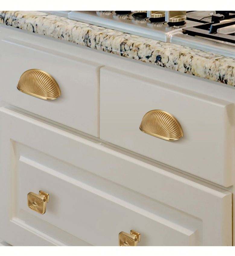 Wekis ลิ้นชักทองเหลืองโบราณสำหรับตู้เสื้อผ้า, สไตล์จีนแบบดึงลิ้นชักเปลือกสีทองมีรูเดียวที่จับประตูตู้ขนาดเล็ก