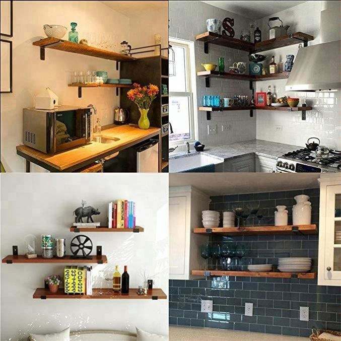 ชั้นวางของติดผนังโลหะตกแต่ง WEKIS พร้อมขายึดเหล็กแบบลอยตัว ขายึดประตูไม้รูปสามเหลี่ยม ชั้นวางของแบบลอยตัวพร้อมขอบมุม
