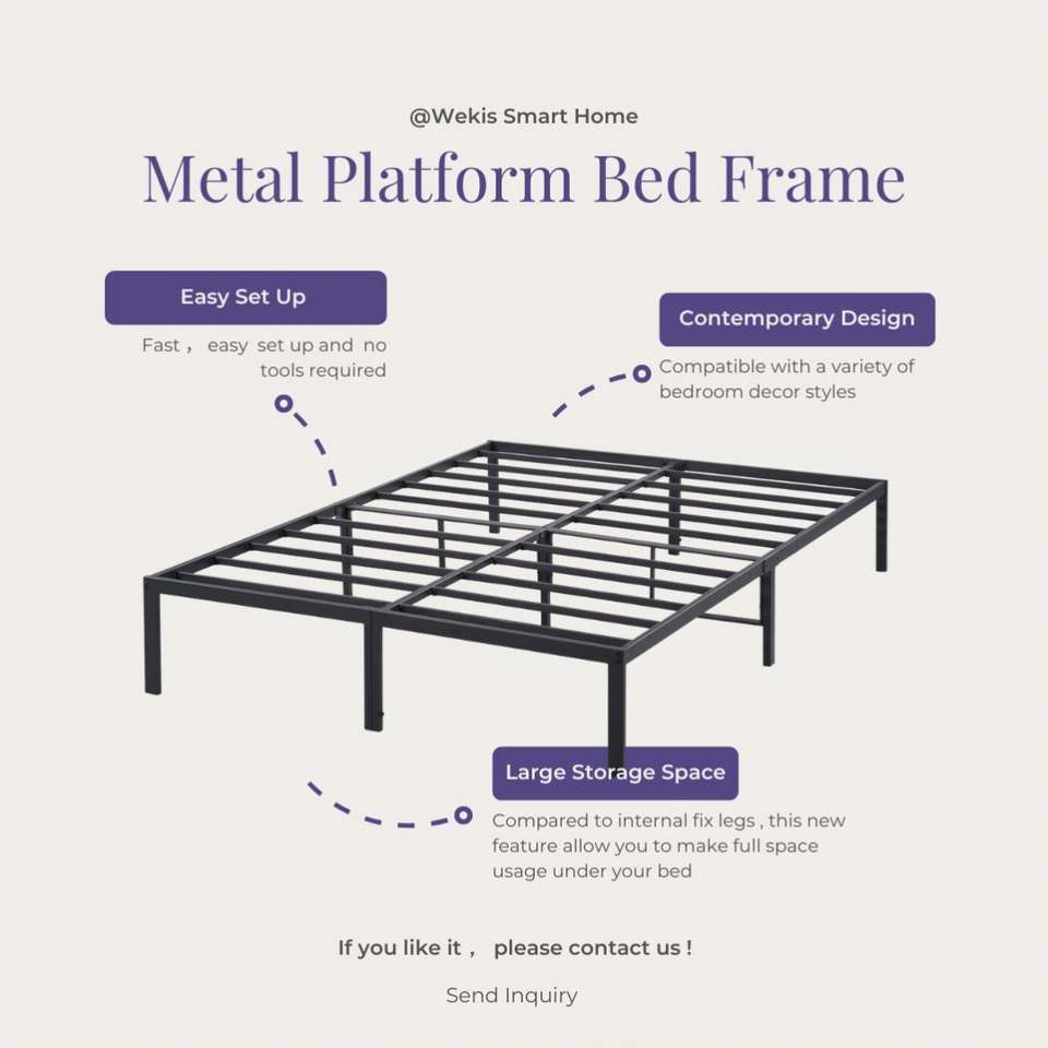 โครงเตียงเหล็กแบบแพลตฟอร์มสำหรับที่อยู่อาศัย WEKIS โครงเตียงคู่ขนาดควีนไซส์/คิงไซส์ ทันสมัย พร้อมแผ่นเหล็กคู่