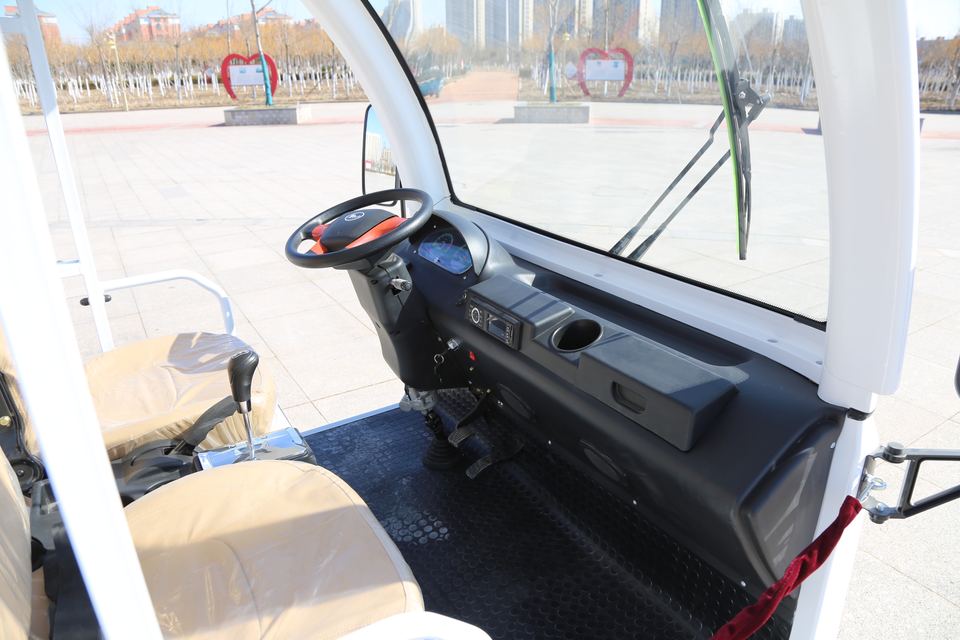 รถเที่ยวชมเมืองไฟฟ้า WELIFTRICH แบบปิด 8-14 ที่นั่ง 72V ได้รับการรับรองมาตรฐาน CE มอเตอร์ 5 กิโลวัตต์ DC/AC ระยะทางวิ่ง 80-100 กม. ขึ้นเนินได้ 15% ความสูง 6 เมตร หมุนรอบได้ 6 เมตร