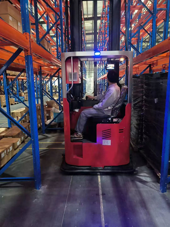 รถยกไฟฟ้าแบบทางเดินแคบๆแบบเวลิฟท์1.5ตันแบตเตอรี่ตะกั่วกรดเสาสามขั้นตอนรถยกรถยก VNA แบบมีข้อต่อ