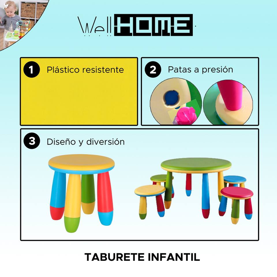 WELL HOME เก้าอี้เด็ก สีเหลือง เก้าอี้พลาสติกทนทาน เส้นผ่านศูนย์กลาง 30x26 ซม.