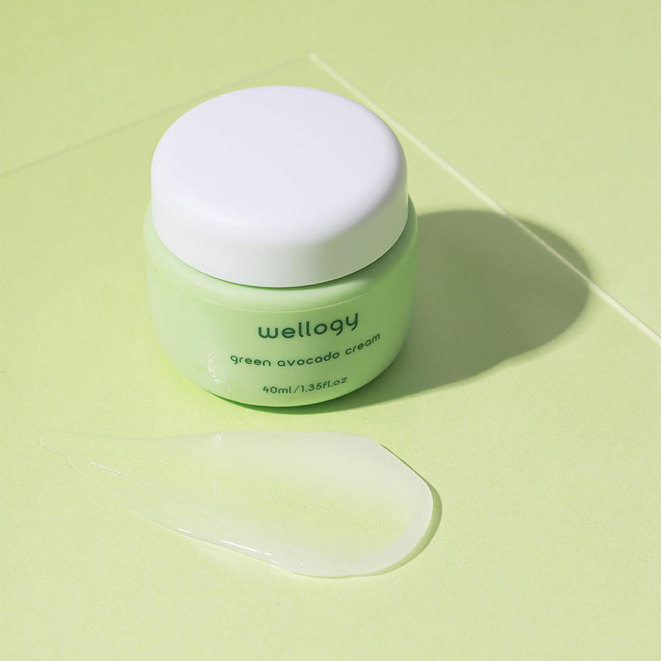 WELLOGY Green Avocado Cream Korean Skin Care Gel Facial Lotion Vitamin C Hyaluronic Acid Niacinamide for Anti-Wrinkle Benefits