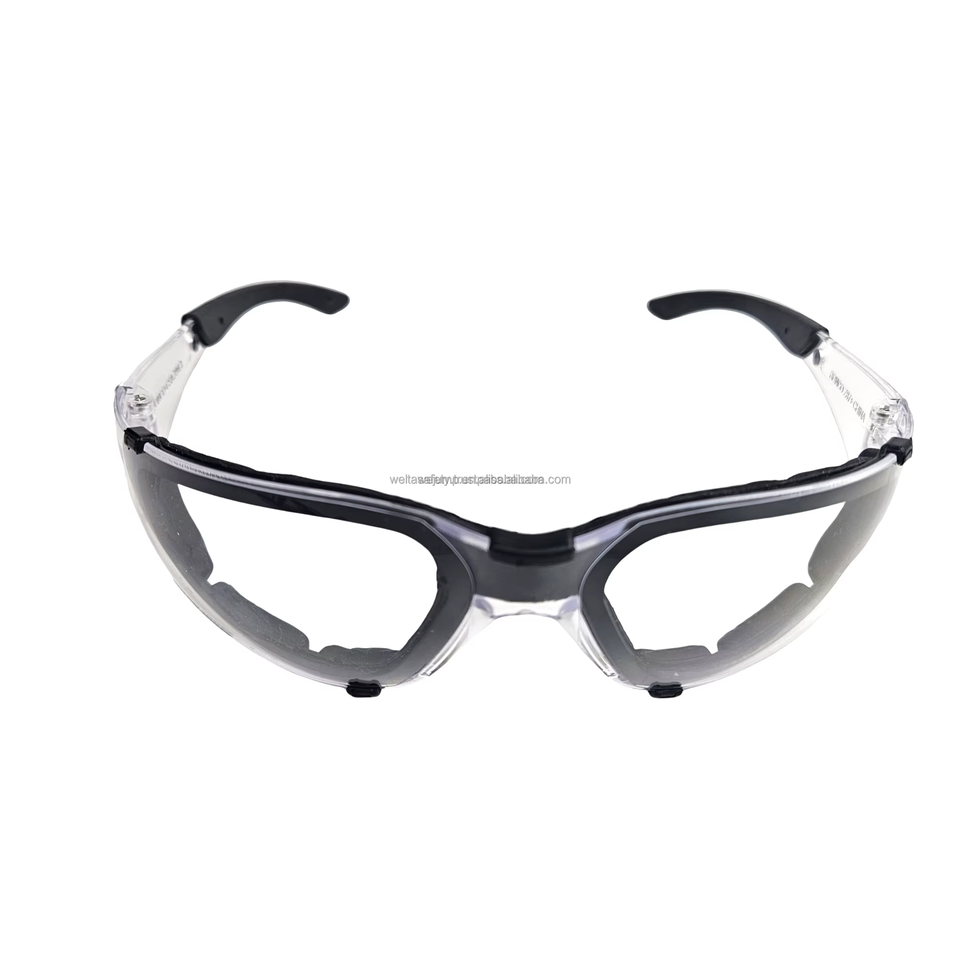 แว่นตานิรภัย WELTA PC แบบมีแผ่นรอง CE/ANSI รับรองมาตรฐาน กรอบเต็ม ป้องกันรอยขีดข่วน ป้องกันฝ้า ขาแว่นถอดได้ สายรัดยืดหยุ่น ป้องกันดวงตา