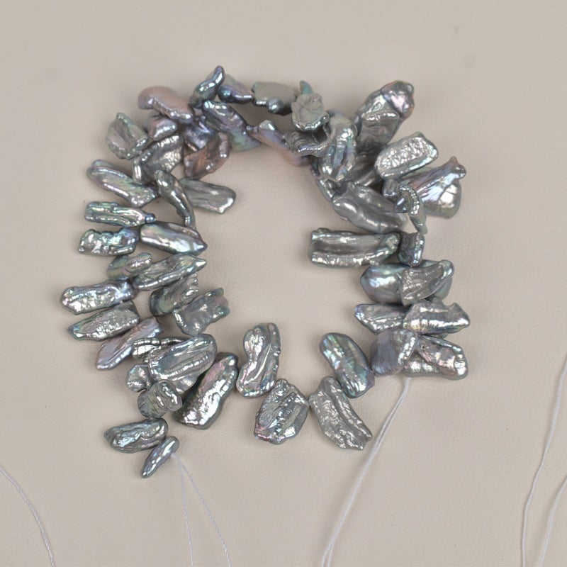 ไข่มุกน้ำจืดแท้ทรงกลีบดอกไม้แบบพิเศษ รุ่น WENCHI 1091 สีเทาเปลือกหอย ขนาด 7x10 มม. กำลังดำเนินการ
