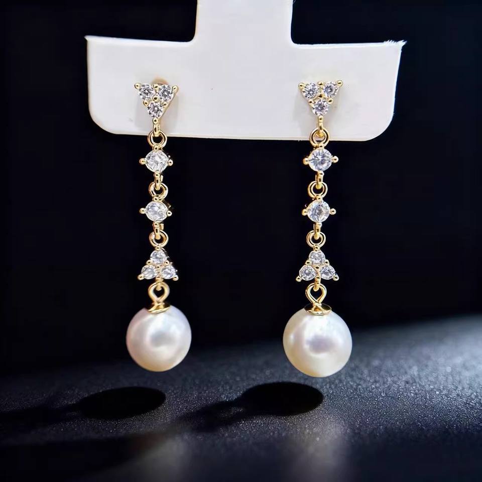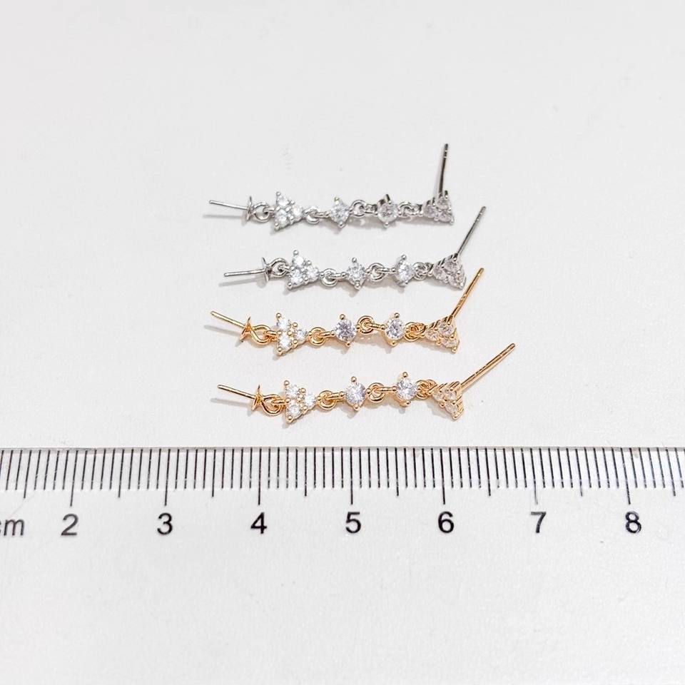ต่างหูเงินแท้ S925 รุ่น WENCHI 11009 22863DIY ขนาด 7-12 มม. ประดับมุกหลากสีสัน ดีไซน์ทันสมัย พร้อมฐานเปล่าสำหรับตกแต่งคริสตัล
