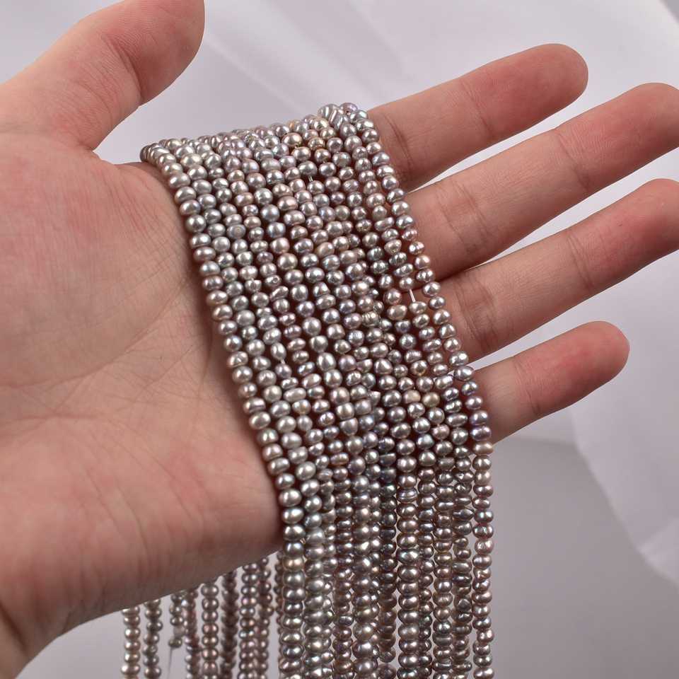 ลูกปัดมุกน้ำจืดธรรมชาติ WENCHI 1127 ขนาด 3-4 มม. สำหรับงาน DIY แบบเจาะรู สีเทาผ่านการฉายรังสี น้ำหนัก 30 กรัม