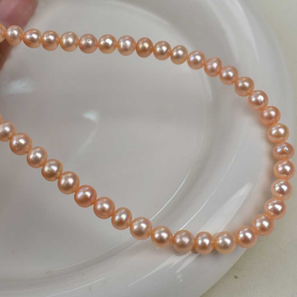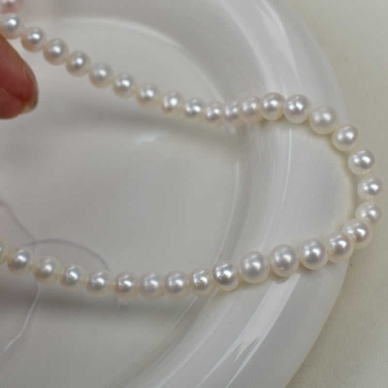 ไข่มุกน้ำจืดสีขาวธรรมชาติ WENCHI 1178 ขนาด 5-6 มม. งานกำลังดำเนิน ลูกปัดทรงบาร็อคแบบหลวม ร้อยเป็นสายยาว 37 ซม.