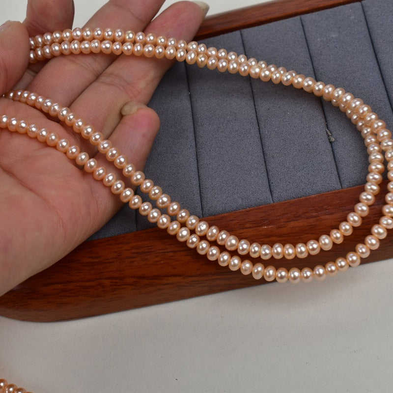 WENCHI 1227 ไข่มุกน้ำจืดแท้สีขาวธรรมชาติ ขนาด 4-5 มม. แสงสว่าง แข็งแรง หนา แบน ร้อยเองได้ วัสดุทำเครื่องประดับ DIY