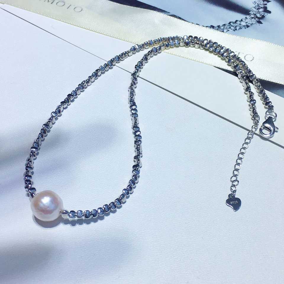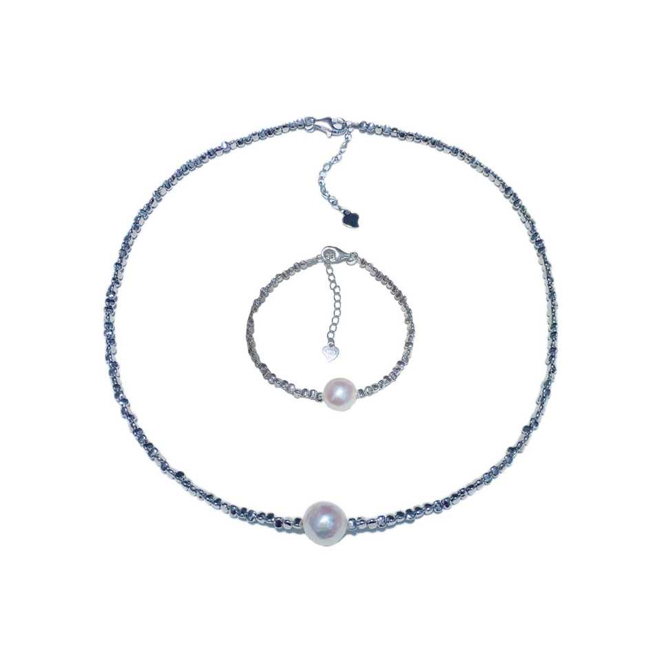 WENCHI ชุดสร้อยคอและสร้อยข้อมือเงินแท้ S925 ประดับมุกน้ำจืดทรงบาโรก น้ำหนัก 450 กรัม