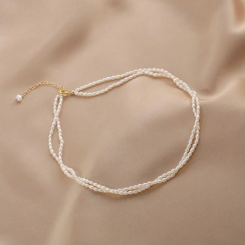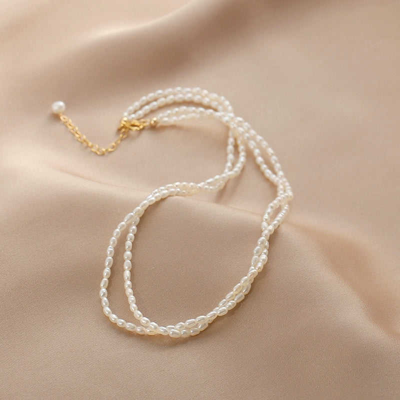 สร้อยคอไข่มุกน้ำจืดเวนชีแบบสองชั้นสำหรับผู้หญิง สไตล์อเนกประสงค์ หลายชั้น แบบอินเทอร์เน็ตเซเลบริตี้ สุดน่ารัก ประดับพู่สั้น 35 ซม.