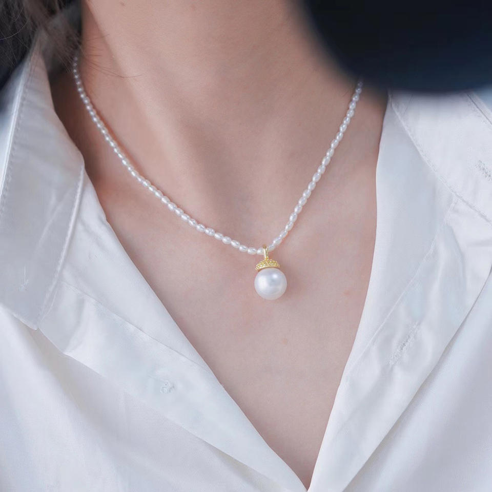 WENCHI S925 สร้อยคอหยกทรงไพน์โคนสีเงิน ขนาด 10-15 มม. ลูกปัด DIY อุปกรณ์เสริมไข่มุกเม็ดเดี่ยว รุ่น 10524 จีน