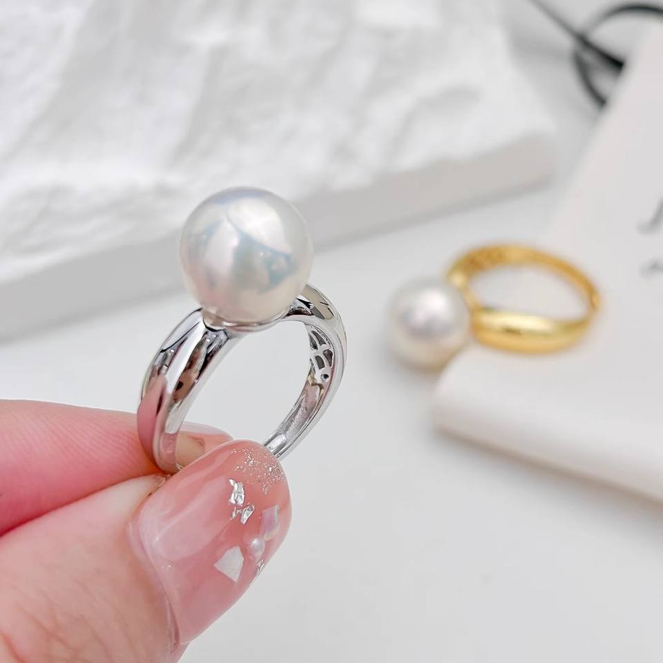 แหวนเงินแท้ WENCHI S925 พร้อมฐานตั้ง สำหรับประดับมุก DIY แหวนแฟชั่น ใส่ลูกปัดกลมขนาด 8-9 มม. รุ่น 11973 ผลิตในจีน
