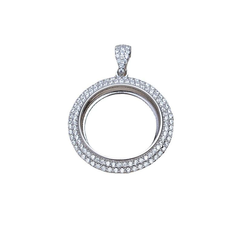 จี้เงินแท้ WENCHI S925 ทรงกลม 16.5 มม. สำหรับใส่ไข่มุกมาเบะ ถาดเปล่าสำหรับงาน DIY อุปกรณ์ประกอบเครื่องประดับ